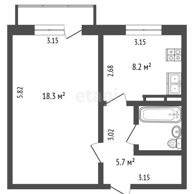 - Площадь кухни8.2 м²