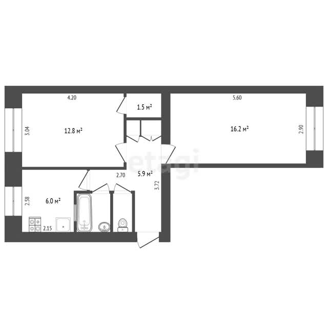 - Общая площадь46.2 м²